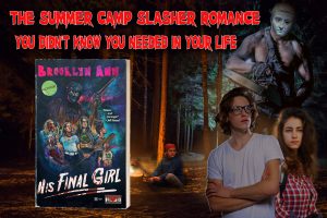 Written in the tradition of summer camp slashers like Friday the 13th, Sleepaway Camp, and The Burning, His Final Girl promises all the cheesetastic staples: jocks, stoners, nerds, sex, keggers, off-the-wall gory kills…A few tropes are flipped, with unexpected survivors, and an HEA that romance readers crave.